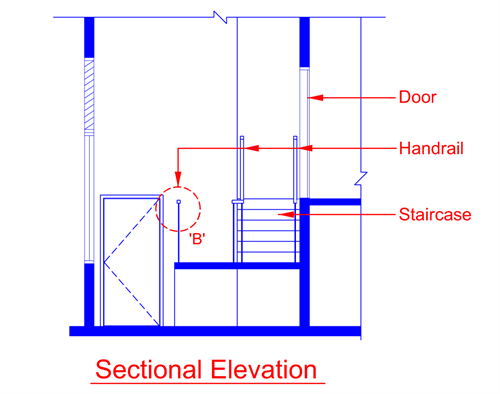 Note: The projection of handrail into the clear width of a staircase shall not exceed 80mm on each side of the staircase. If the projection exceeds 80mm, the clear width of the staircase shall be measured from the inner sides of the handrails.