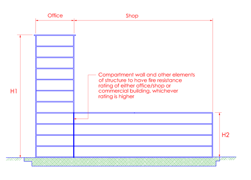 c. If any element of structure forms part of more than one building or compartment and the requirements of fire resistance specified in Table 3.3A, in respect of one building or compartment, and differs from those specified in respect of any other building or compartment of which the element forms a part, such element shall be so constructed as to comply with the greater or greatest of the requirements specified.