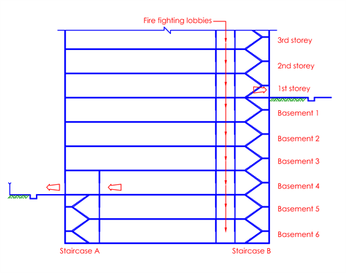 In a building comprising more than four basement storeys, exit staircases connected to a fire lift lobby in basement storeys shall be pressurised to comply with the requirements in this Code.