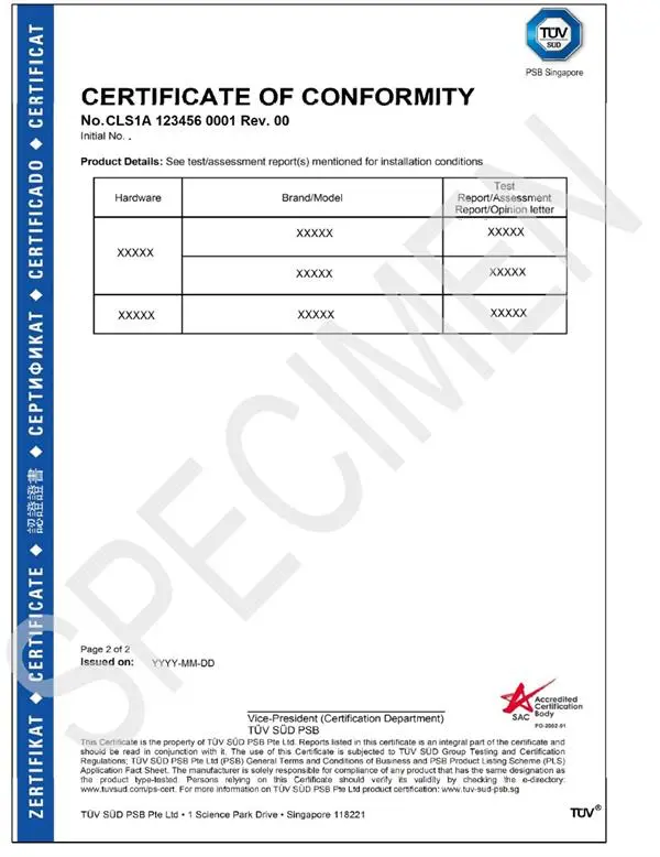 (2) Note: The layout of the CoC might be updated without prior notice due to certification bodies’ terms and conditions. For the latest layout do refer to the certification bodies’ website.