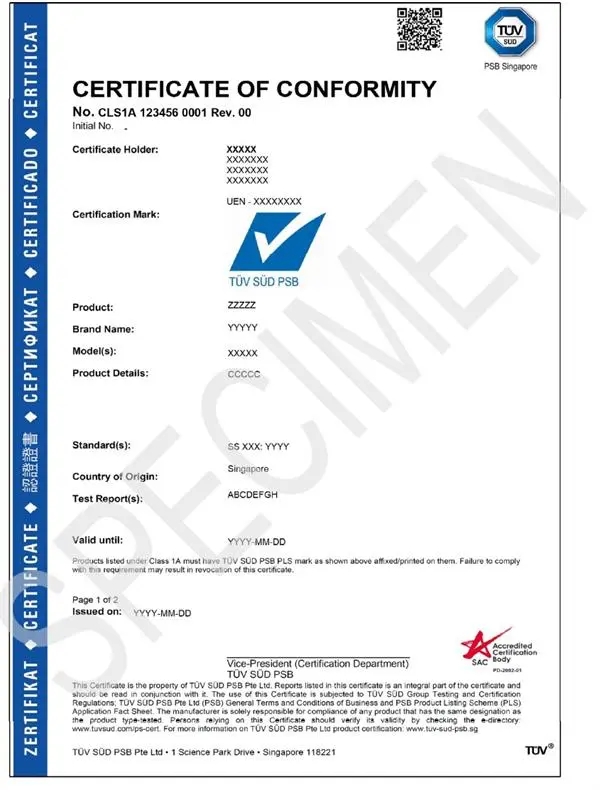 TUV Rheinland Singapore Pte Ltd (3) | CODIMI Pte Ltd (3) | Intertek Testing Services (Singapore) Pte. Ltd. (3) |