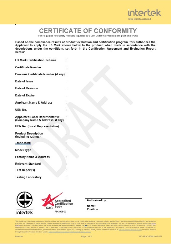 A CoC is a certificate issued by CBs for a regulated fire safety product that meets product testing standards and certification requirements. These certified products are recorded in a product directory on the CB’s website for reference and verification of the CoC’s validity. Please note that all CoCs will be issued to CoC holders in PDF format.