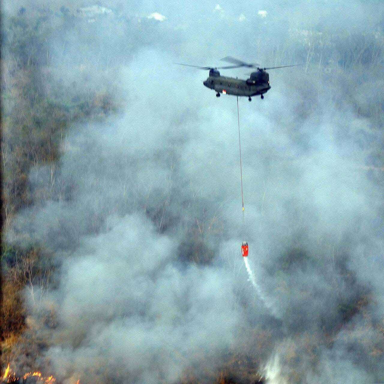 The team operated a 5,000 litre Heli-bucket, which combats fires by dispensing water from beneath a helicopter. The SAF also mobilised 50 officers, supported by two RSAF Chinook helicopters for the mission.