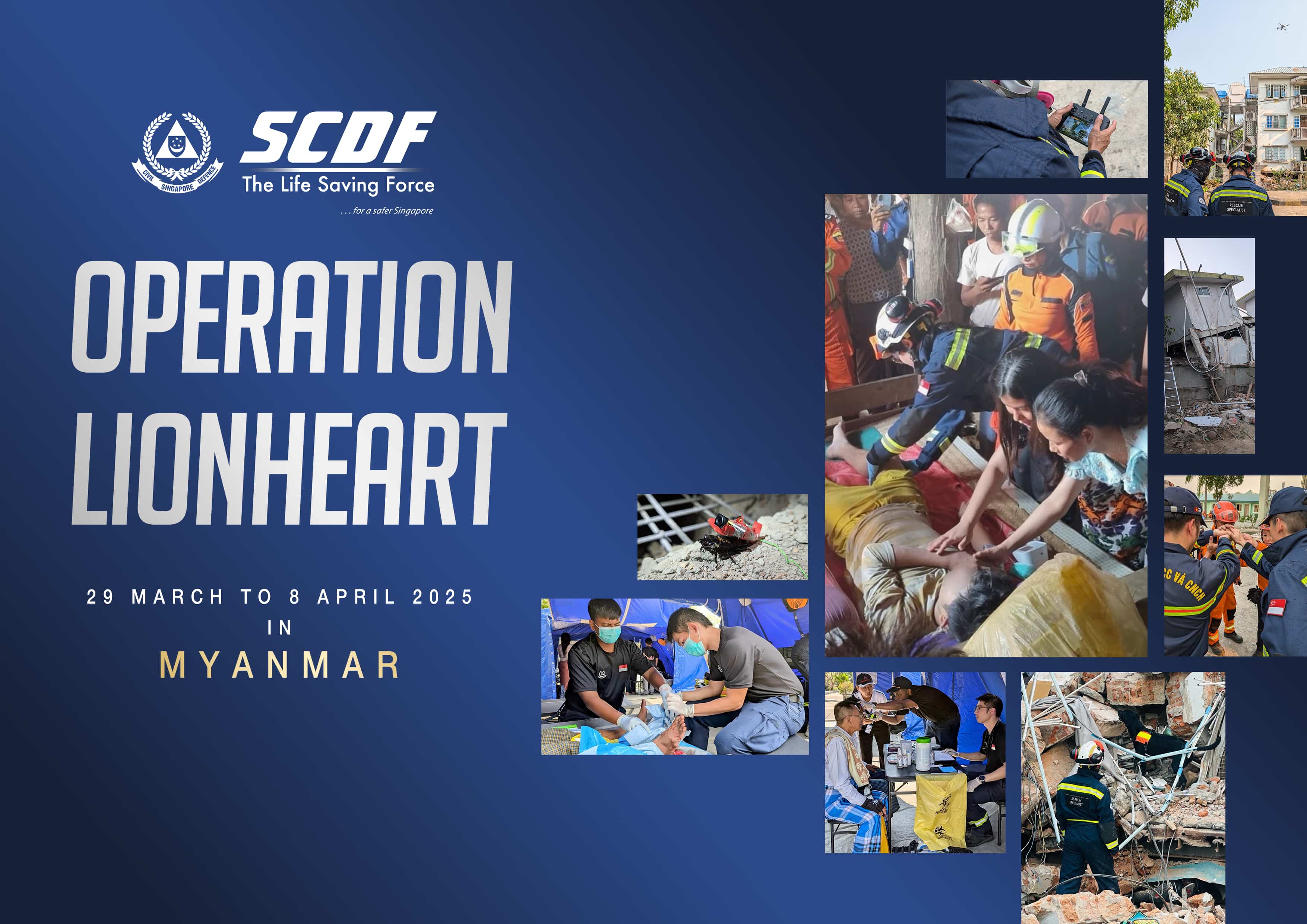 The ebook documents the Operation Lionheart deployment to Myanmar in March 2025, from the rescue of a man trapped beneath the rubble to the medical and humanitarian aid provided to affected communities. It features detailed accounts, anecdotes and photos from contingent members, as well as SCDF officers deployed with UNDAC and ASEAN-ERAT.