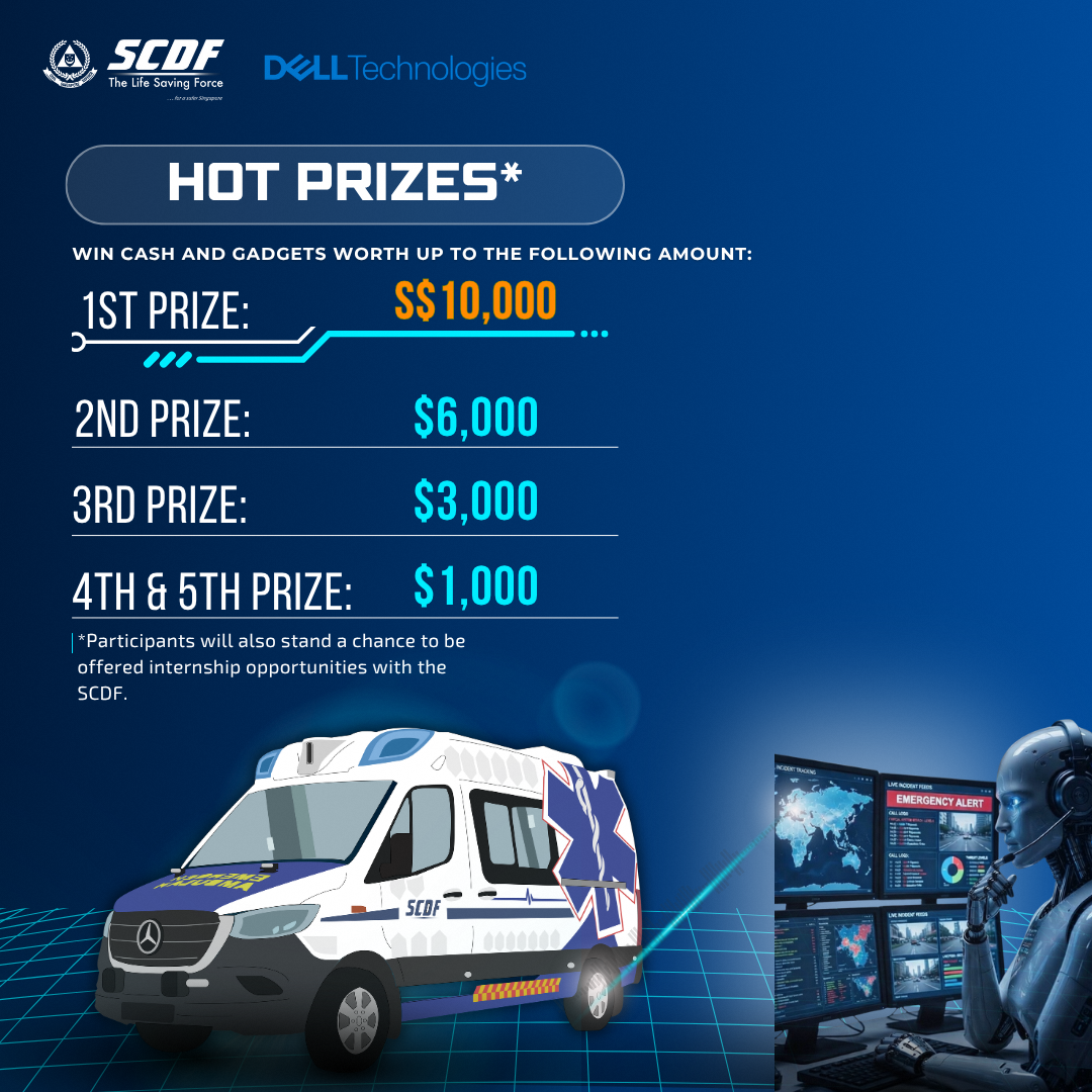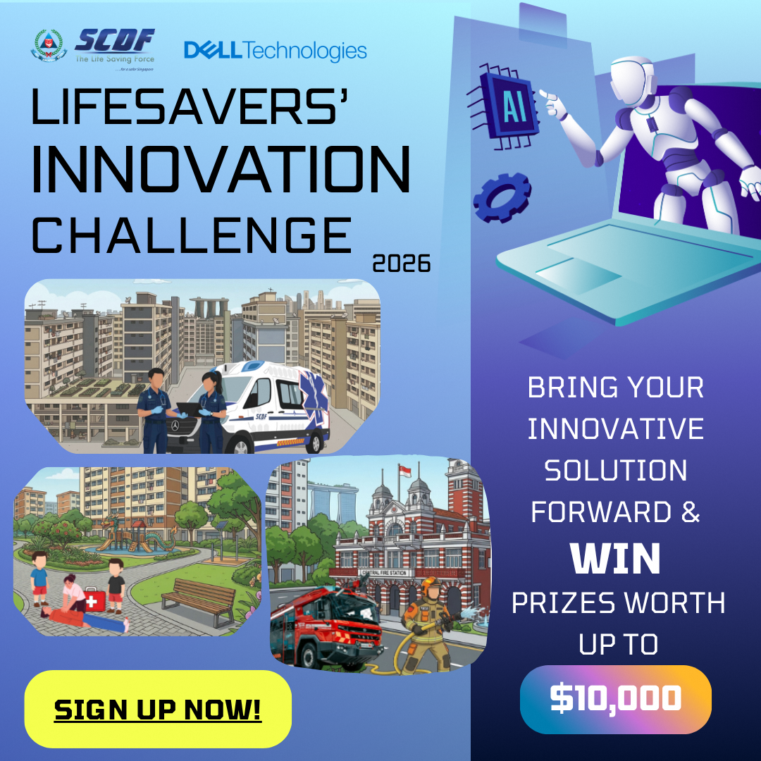 Calling all innovators! 🚨 The SCDF & DELL Lifesavers’ Innovation Challenge 2026 is back. We’re on the hunt for the best ideas to leverage automation, robotics, or data-driven and AI-driven solutions to assist SCDF's frontline responders, enhancing operational effectiveness and/or improving responder safety. Are you ready to answer the call? Join the challenge and submit your prototype today!
